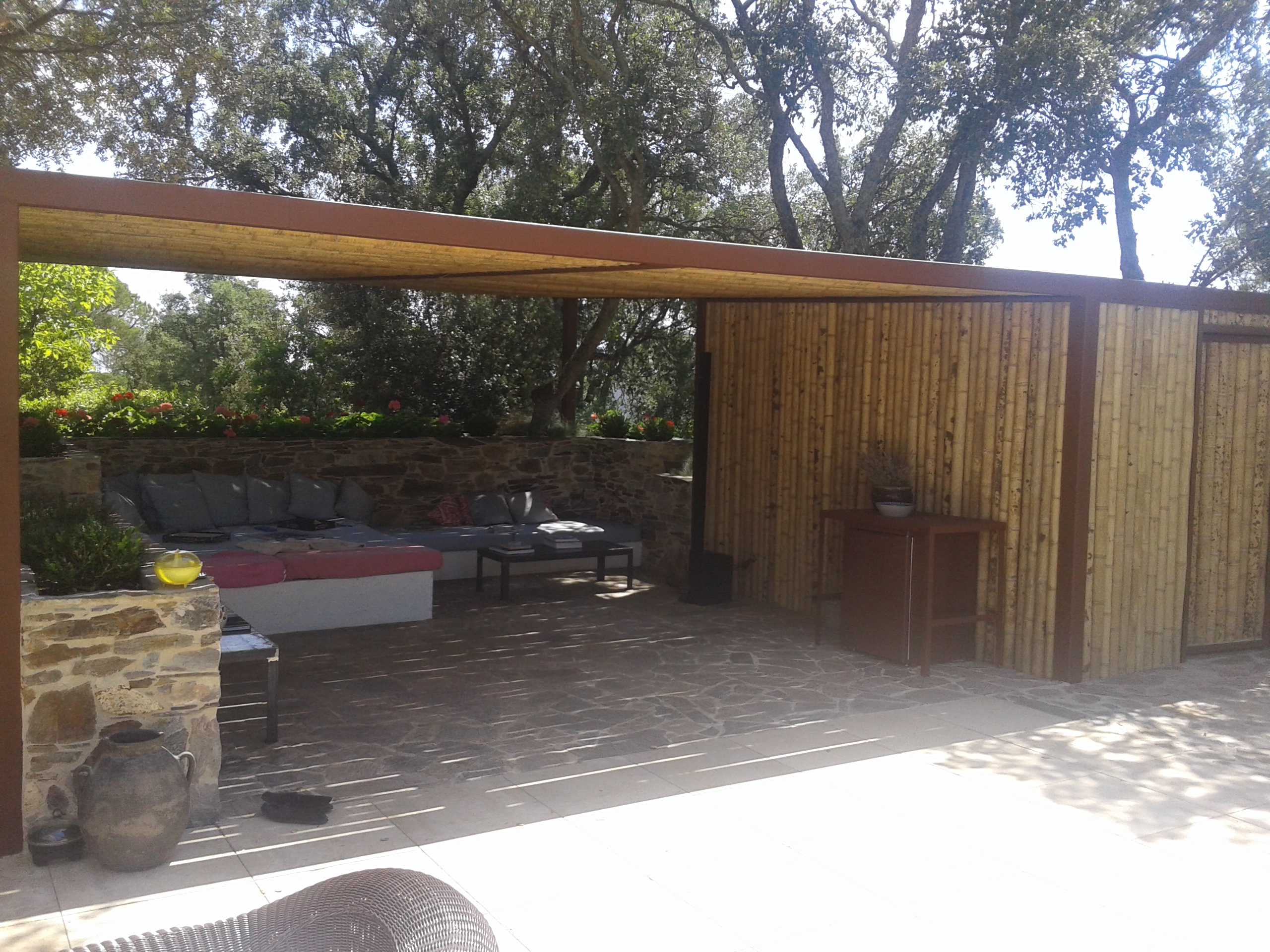 Pérgola de hierro con y bambú natural Pérgola de hierro con techo de bambú Guadua…